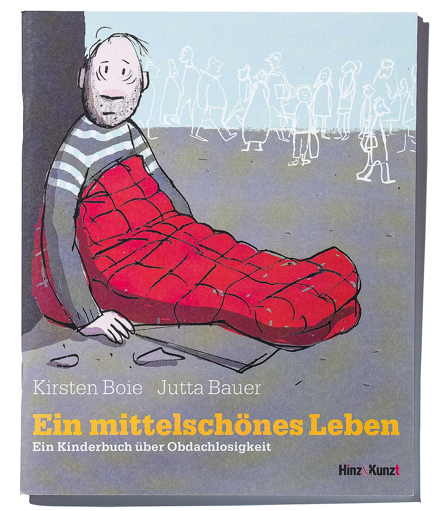 Wie erklärt man Kindern, warum jemand bettelnd am Straßenrand sitzt, ganz offensicht kein Geld und kein Zuhause hat? Um Augen zu öffnen und Gespräche anzuregen, Toleranz und Mitgefühl zu stärken, haben Cordula Thörner und Isabelle Erler für das Hamburger Straßenmagazin Hinz&Kunzt ein Kinderbuch konzipiert und gemeinsam mit der Autorin Kirsten Boie und der Illustratorin Jutta Bauer realisiert. So erzählt Ein mittelschönes Leben nun im ersten Teil die fiktive Geschichte eines Mannes, der obdachlos wurde. Im zweiten Teil beantworten Verkäufer*innen des Hamburger Straßenmagazins Hinz&Kunzt Fragen von Grundschüler*innen. Sachinformationen ergänzen die Antworten.