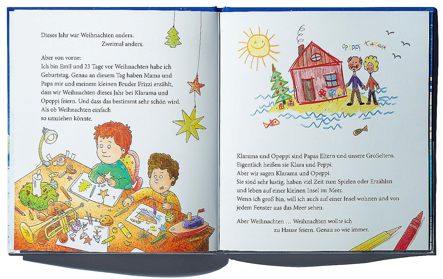 Kurz vor Heiligabend machen sich Emil und Frizzi mit ihren Eltern auf den Weg zu Oma und Opa. Bei ihnen auf der kleinen Insel wollen sie gemeinsam Weihnachten feiern. Doch plötzlich bleibt die kleine Fähre, die sie übers Meer bringen soll, im Treibeis stecken …
